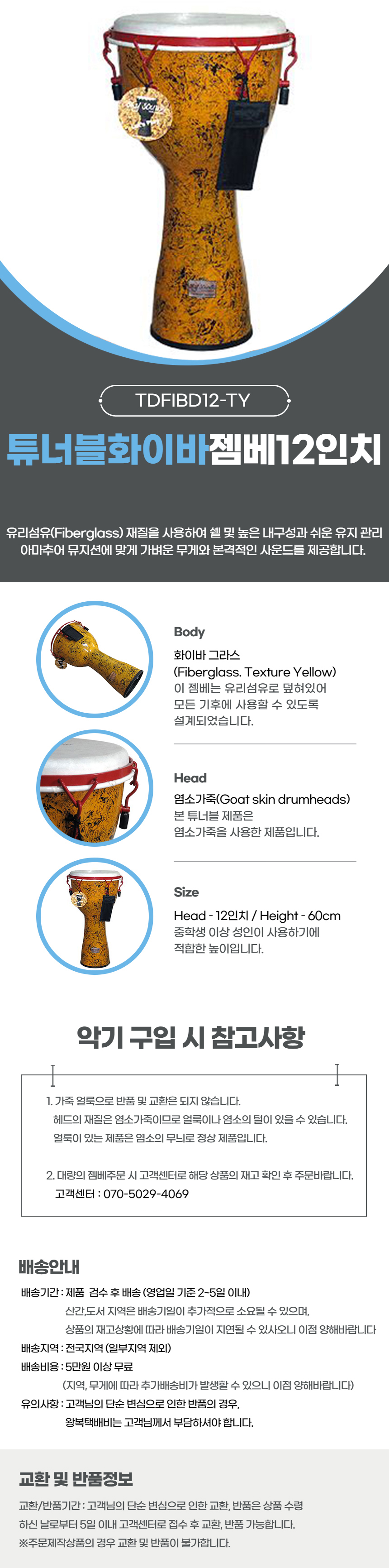튜너블 화이바 젬베 12인치
